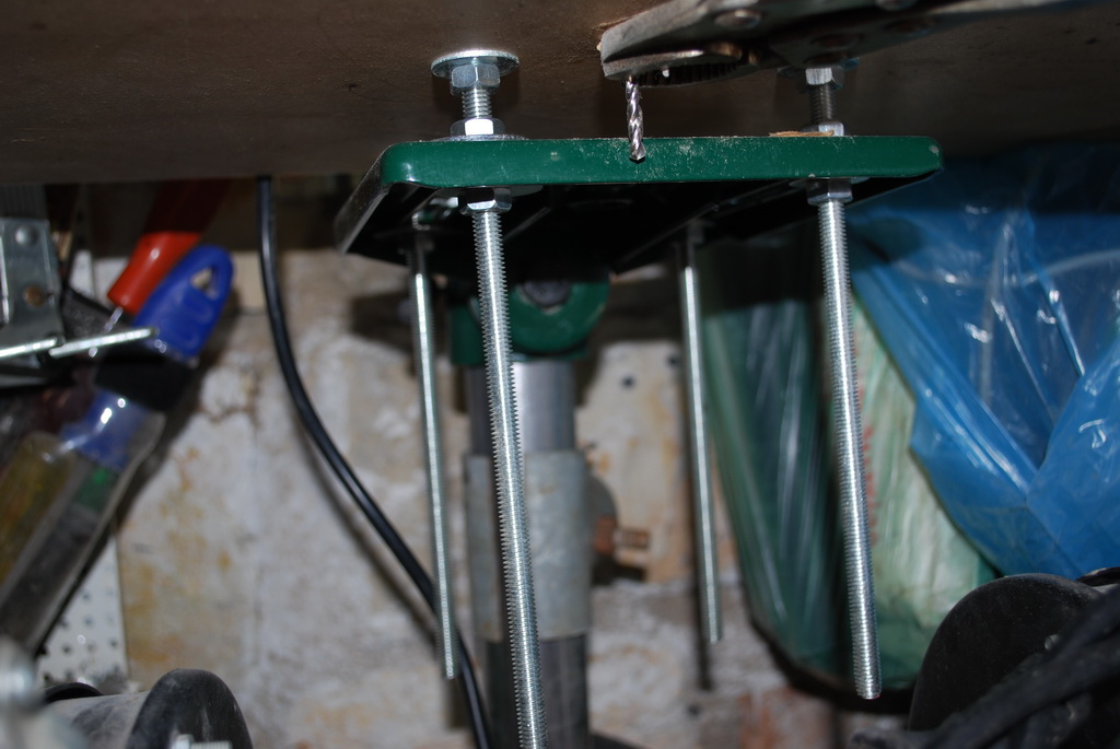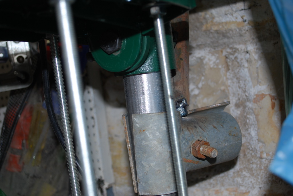 Το μόνο που έκανα ήταν να κόψω λίγο το μήκος της βάσης (της κεραίας) γιατί έβγαινε πολύ έξω και την κόλλησα πάλι με ηλεκτροκόλληση. Την κάτω την βάση (του πάγκου) την βίδωσα απλά σε μία άλλη βάση που είχα από κάτω για έναν τροχό που έχω. Δηλαδή από εργαλεία μόνο ηλεκτροκόλληση και πάλι δεν είναι αναγκαίο εάν σου κάνει το μήκος της πάνω βάσης. Επίσης άλλαξα τις δύο τις βίδες που είχε το δράπανο για να σφίξει η κολώνα με το στέλεχος του μοτέρ με δύο πιο μακριές αλενόβιδες. Τώρα η απόσταση που έχω από το τσοκ μέχρι πίσω είναι πάνω από 20 εκατοστά και η όλη κατασκευή έδεσε πάρα πολύ καλά και δεν έχει καθόλου τζόγο και σε αυτό βοήθησε πολύ η λάμα που κόλλησα στον σφιγκτήρα κάτω από τον πάγκο με το πάνω μέρος (βάση κεραίας) και έτσι εάν χρειαστεί να βάλεις πολύ δύναμη για να τρυπήσεις σίδηρο ας πούμε το δράπανο θα μετακινηθεί ελάχιστα αλλά μαζί με τον πάγκο εργασίας οπότε δεν θα έχεις πρόβλημα στο τρύπημα.