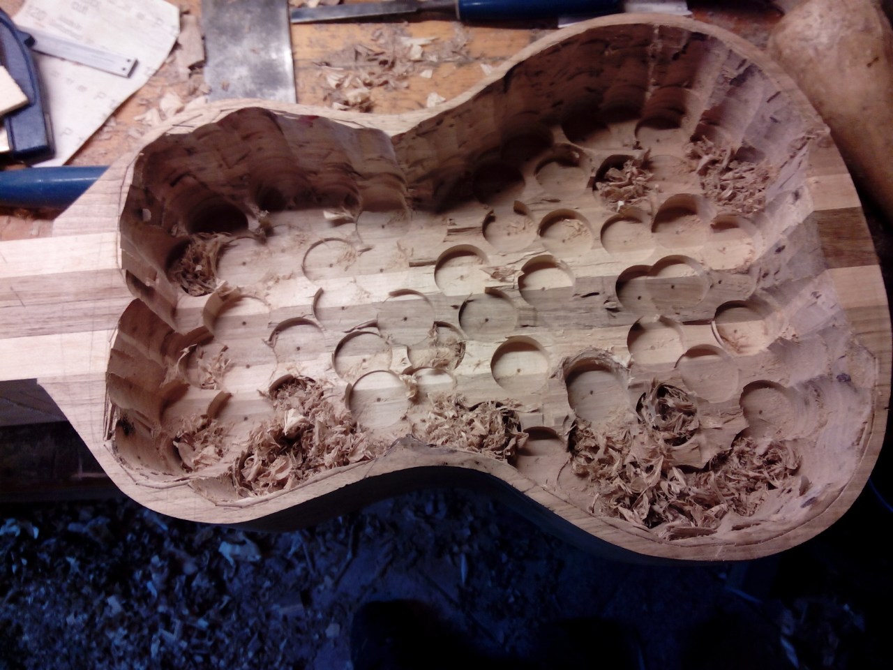 Το σκάψιμο έγινε με σκαρπελα, κολονατο δραπανο και 2 κοπτικα 35 χιλ.το ενα εχει μύτη οδηγό για  να τρυπα ενω το άλλο  δεν έχει μύτη για κανω το παχυμετριμα στο τέλος.στο κατο καπάκι εσωτερικά στις ένωσης κόλλησα μπαλώματα ενω δεν θα μπούνε καμάρια.