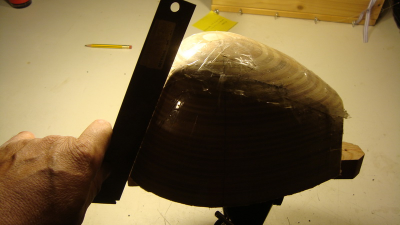 και φωτο από τον έλεγχο της "επιπεδότητας" στην κολλάντζα και τα πλαϊνά. Η γωνία πράγματι δεν είναι ίδια, αλλά όσο πιο μεγάλη διαφορά έχει (π.χ. κλειστή οξεία στην κολλάντζα και σχεδόν κάθετη όσο πλησιάζεις στον μπροστινό τάκο) τόσο πιο "στρυφνή" γίνεται η καμπύλη του πλαϊναριού (κι αυτή η λέξη κλίνεται ?)