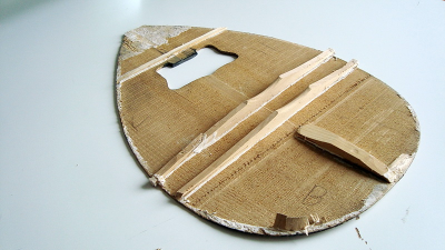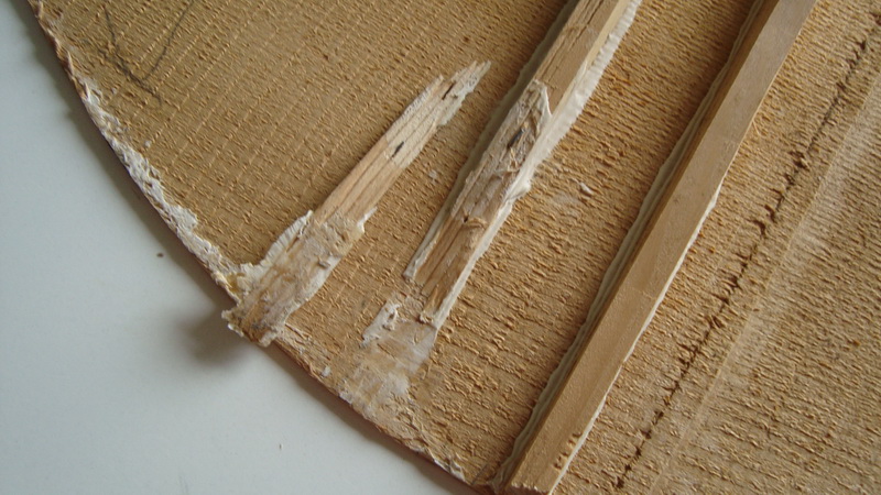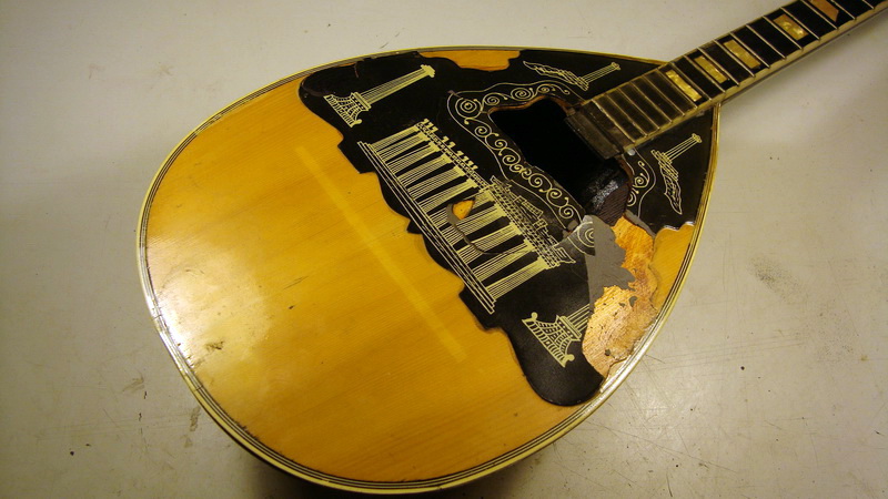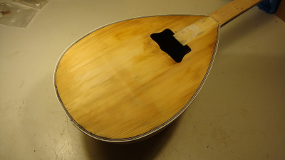 το μπουζούκι δεν έπαιζε (ήταν χωρίς χορδές και αγρίως σκεβρωμένο) αλλά ένα τεστάκι έκανα πριν αρχίσω το ξήλωμα. Έβαλα δυο χορδές και το δοκίμασα λιγάκι, ήταν πολύ "μπουκωμένο" μάλλον (λέω) λόγω του καβαλάρη που φαινόταν να είναι ακριβώς πάνω στο πίσω καμάρι. Τέλως πάντων άρχισα να ξηλώνω