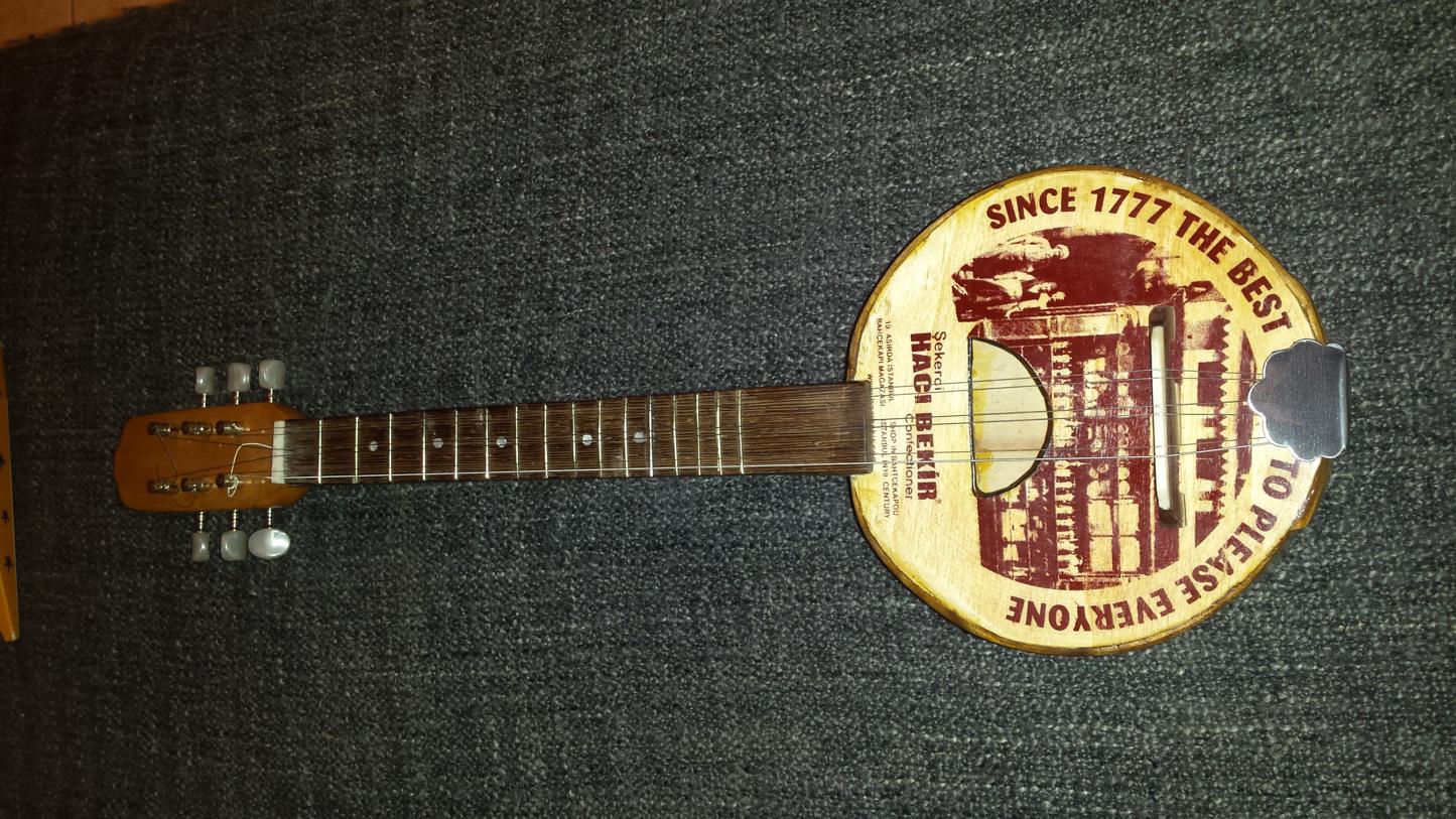 Η όλη ιδέα ξεκίνησε πριν από περίπου 4 χρόνια όταν ένας συνάδελφος από Τουρκία στην επίσκεψη του στα γραφεία μας, μας έφερε πεσκέσι για τα καλορίζικα δυο κουτιά λουκούμια από την Πόλη και μάλιστα από τον παλαιότερο και πιο γνωστό λουκουμουποιό της Πόλης Haci Bekir. Το κουτί μου άρεσε αμέσως και κατάφερα και ψείρισα όμως μόνο το ένα αφού πρώτα έτρωγα αφειδώς τα λουκούμια για να αδειάσει μιας και το πρώτο κουτί που τελείωσε εξαφανίστηκε πριν καν το πάρω χαμπάρι. Και ζορίστηκα είναι η αλήθεια(!!)  με τα λουκούμια – θυμήθηκα και το Καραγκιόζη που ήθελε να αυτοκοτονήσει με λουκούμια και αγχώθηκα κιόλας. Είχα δει εδώ στο φόρουμ,  και από κοντά στην έκθεση τις πολύ ωραίες κατασκευές του Σταμάτη (αν δεν κάνω λάθος το όνομα)  τα επονομαζόμενα cigar boxes, ζήλεψα και μου μπήκε η ιδέα να κάνω αυτό το όμορφο κουτί κάτι αντίστοιχο αλλά με περισσότερο άρωμα Ανατολής. Η αρχική μου σκέψη ήταν να γίνει  κάτι σαν cumbus με ναϋλον χορδές σε κλιμακα και κούρδισμα λάφτας, ιδέα που τελικά απορρίφθηκε μιας και θεώρησα πως ο μικρός όγκος του σκάφους δεν θα απέδιδε για τέτοιου είδους  όργανο. Τελικά περνώντας από τζουρά κατέληξε σε μπαγλαμά λόγω του πιο ματζόβολου μεγέθους και την ανησυχία μήπως η πρόχειρη κατασκευή του κουτιού δεν αντέξει τις τάσεις ενός πιο μεγάλου όργανου σαν τον τζουρά.  Ένα σημείο που πρέπει να επισημάνω είναι η εντύπωση που μου έκανε το καπάκι του κουτιού, που όταν το χτύπαγα με το δάχτυλο έβγαζε φωνή μεγάλη, το ίδιο και με το διαπασών ακόμα και απλά κρατώντας το στο χέρι χωρίς να το έχω κάπου σταθεροποιημένο.