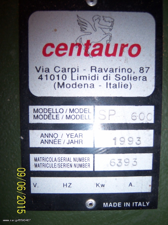 -Πωλείται πριονοκορδέλα CENTAURO 60άρα σε άριστη κατάσταση. Έχει γίνει επίσης μετατροπή από τριφασική λειτουργία σε μονοφασική.