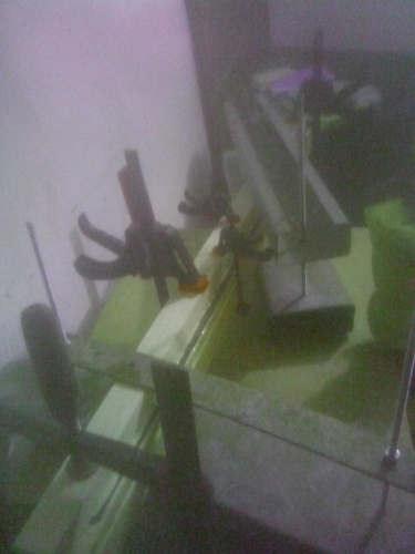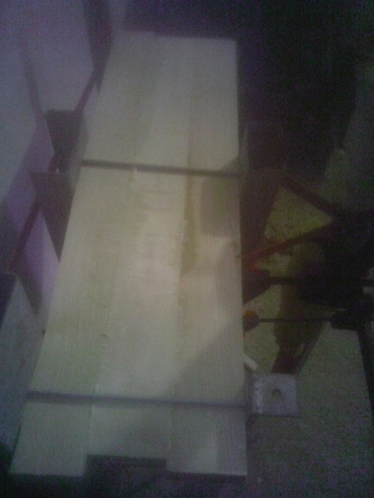 κολλησα 3 κομματια.το μεσαιο ειναι σφενδαμι και τα ακριανα μελιο.Χρεισιμοποιησα διαφους σφικτηρες τιπου "ωχ δεν εχω-ουτε βρισκω και καπως πρεπει να τα σφιξω" αλλα ειναι καλα σφιγμενα