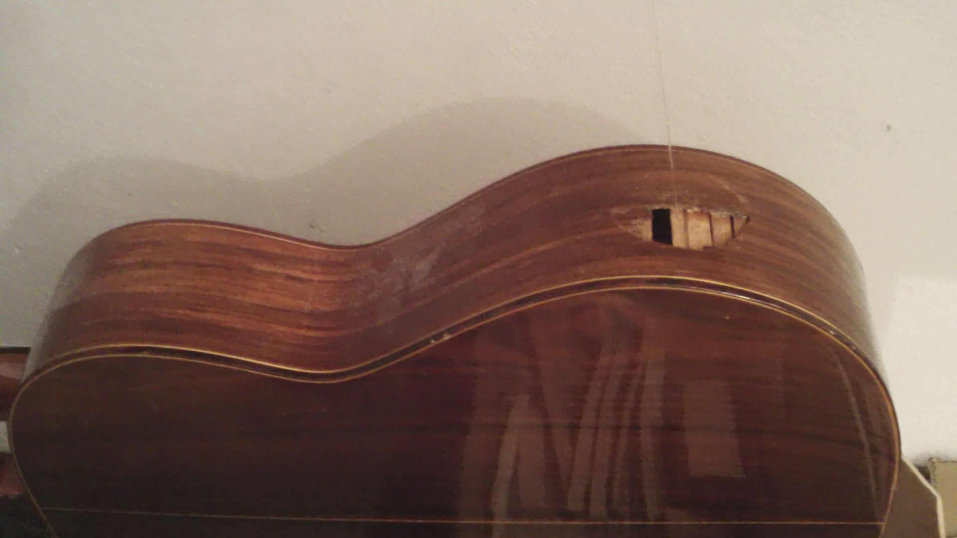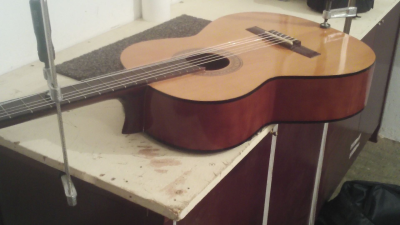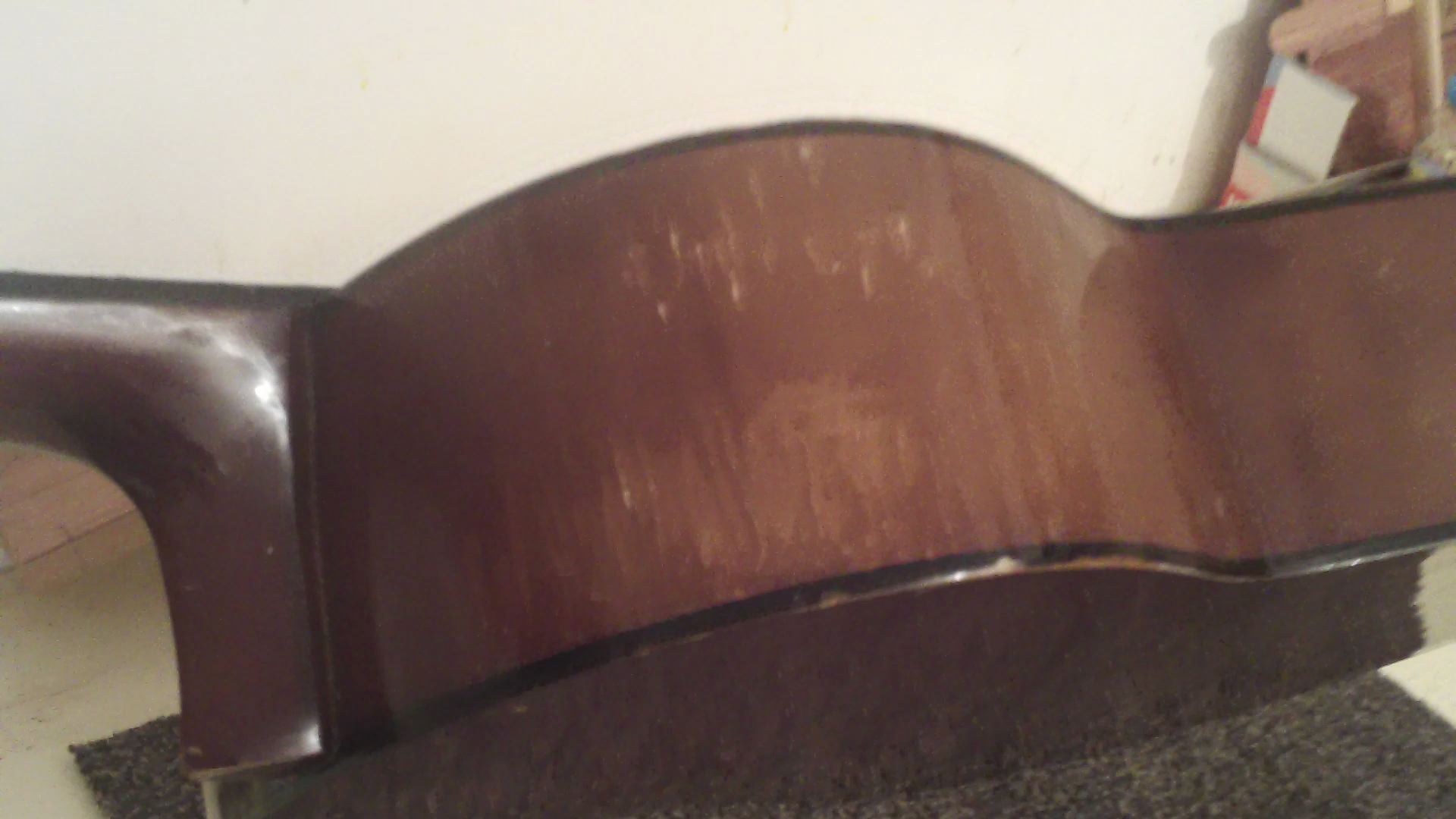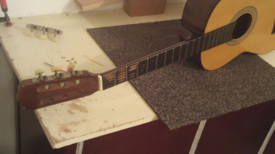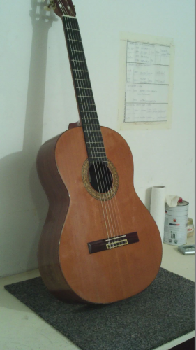 τριψιμο ολα, (αμαν με τα μπορντο μανικια...) καινουργια κλειδια, βερνικια, χορδες, βαλσιμο ενος καμαριου στο καπακι που ειχε φυγει, κολλημα αλλα 2 στην πλατη. καθαρισμα ταστιερας και βαψιμο τοπικα εκει που ασπρισε, κλπ, κλπ, κλπ...