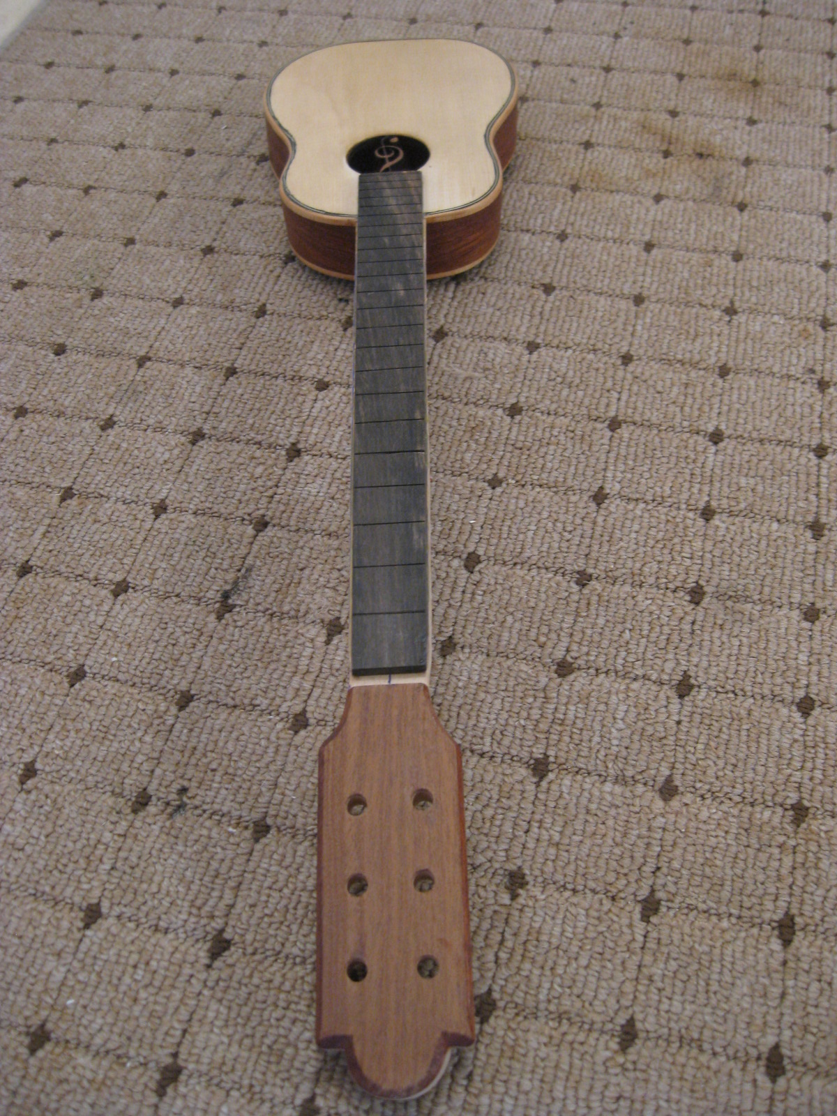 το ίδιο έκανα κι εγώ στα cigar boxes, με το εξωτερικό κέλυφος από πιρτσίνια, το "κεφάλι" (και όλη η χορδή) περνάει από την τετράγωνη τρύπα που φαίνεται από κάτω.