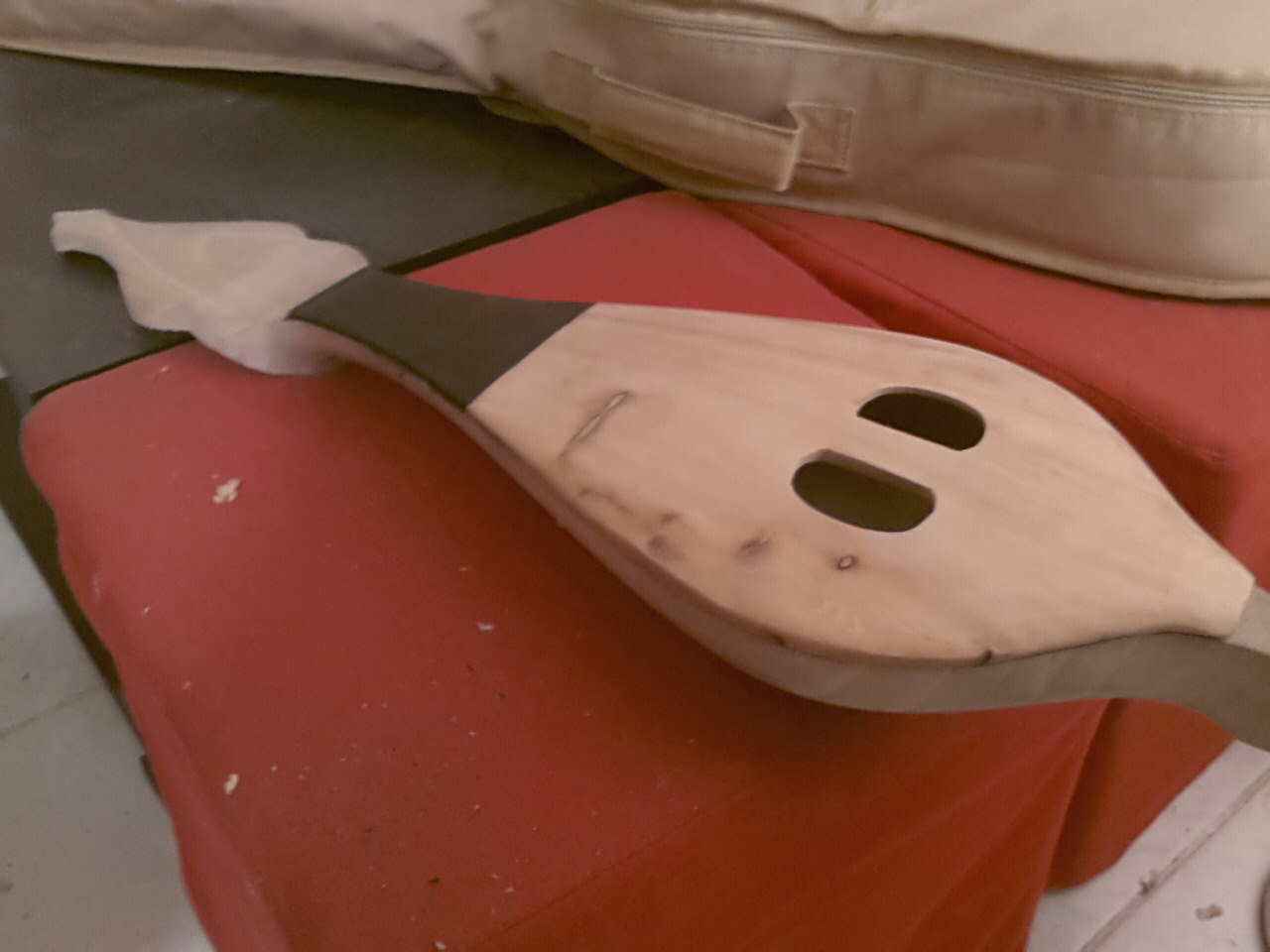 ΜΗΝ κοψεις το καπακι.  παρε ενα κομματι εβενο και ντυσε το κατω κομματι οπως εντυσες τον λαιμο. Ετσι θα καθεται μεσα το καπακι, οπως επρεπε να το ειχες κανει απο την αρχη.