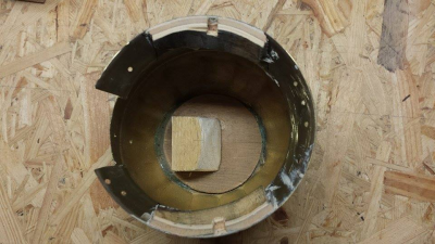 Συνέβη κι ένα "ατύχημα" στο καπάκι , εκεί στη νοητή προέκταση της ταστιέρας, αλλά ελπίζω να μη με προδώσει γιατί αυτή η περιοχή του καπακιού θα κολληθεί στην επιφάνεια του τάκου ...