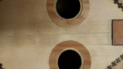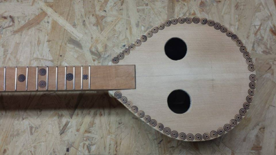 Το ίδιο καπάκι είναι, απλά το έτριψα καλά με γυαλόχαρτο γιατί τα κυκλάκια μου φάνηκαν κάπως μεγάλα για τη μικρή επιφάνεια του καπακιού. Προτίμησα κάτι πιο μικρό ... Ενδεικτικά να πω  - μετά το γυαλόχαρτο -  το πάχος του καπακιού είναι 2,67 μμ κάτω εκεί που θα καταλήγουν οι χορδές, και σε άλλα σημεία της περιφέρειάς του μέτρησα πάχη από 2,98 μέχρι 3,14 μμ