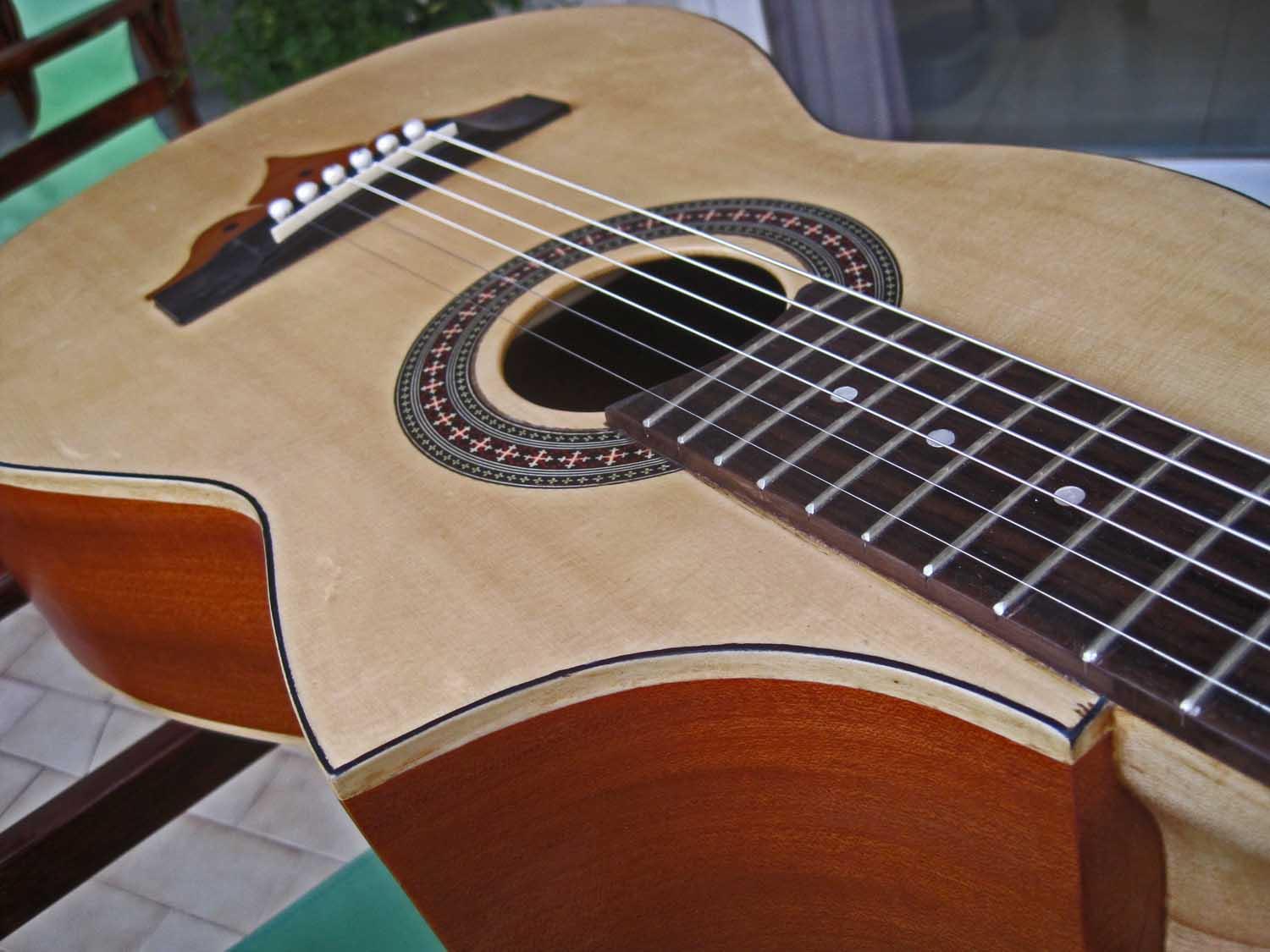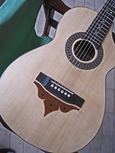 Απλά προσπάθησα , προσθέτοντας αυτό , νά σπάσω λίγο τήν αυστηρή γραμμή πού παραπέμπει περισσότερο σέ κλασσική παρά ρεμπετοκίθαρο . Σάν σχήμα σίγουρα κάπου τόχω δεί αυτό ή παρόμοιο . Καί βέβαια ελπίζοντας πώς 0,6 μμ καπλαμάς Μαόνι δέν θά επηρρεάσει τόν ήχο αισθητά . Εξ άλλου τό θέλω μπάσσο τό κιθαρόνι .