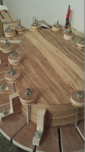 Κόλλησα και τα ξύλα με την τεχνική σάντουιτς για τον τάκο της μπουζουκομάνας – 3 κομμάτια φλαμούρι με ενδιάμεσο κόντρα πλακέ. Χρησιμοποιώ αυτήν την τεχνική για μεγαλύτερη ενίσχυση του τάκου.