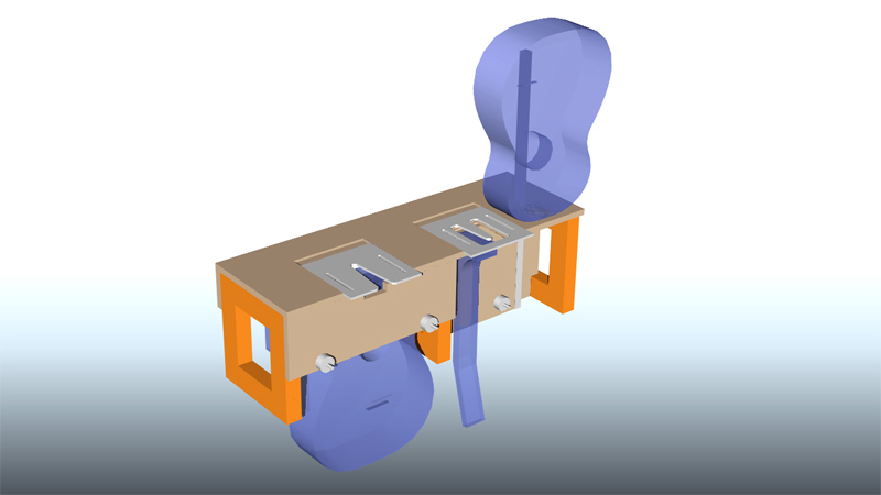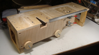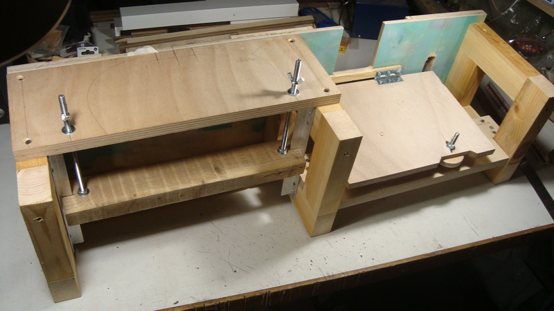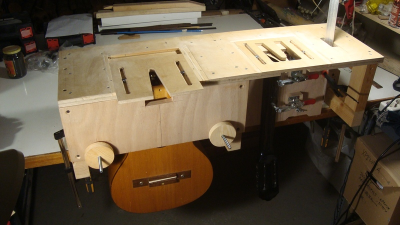 https://www.youtube.com/watch?v=Oi9HVsVjtgEΗ δική μου εκδοχή είναι αντιγραφή ως προς τον τρόπο λειτουργίας αλλά διαφορετική στο στήσιμο γιατί αφενός με βολεύει να δουλεύω επάνω στον πάγκο (άρα με πρόσβαση μόνο από τη μία πλευρά), αφετέρου έτσι “μακρόστενο” χωρίς βάση αποθηκεύεται εύκολα (στον τοίχο) όταν δεν θα είναι σε χρήση (....έχω και κάτι σκέψεις για μετατροπή του και για μπουζούκι, αλλά είναι νωρίς ακόμα).