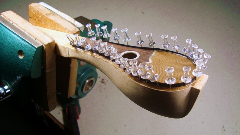 Όλα αυτά βέβαια τα αποφασίζεις αφού έχεις μορφοποιήσει κάπως το μπράτσο ώστε να έχεις μια εκτίμηση για την αντοχή του: κάθε μπράτσο μπορεί να συμπεριφερθεί λίγο διαφορετικά, αναλόγως με τα ξύλα, τις κόντρες και τις διαστάσεις του (στους τζουράδες έχω φτάσει σε πάχος 12 μμ στο πρώτο διάστημα, από 16 στο πρώτο όργανο - το μπράτσο γίνεται "βούτυρο" αλλά πρέπει και να αντέξει). Οπότε επιλέγεις τάστα (πάχος) συνεκτιμώντας όλα αυτά και ενδεχομένως προσπαθώντας να δώσεις μια ελαφριά κλίση προς τα πίσω όπως είπα αρχικά.