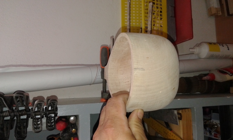 ... το εσωτερικό ήταν για κλάματα, κάποια προσπάθεια έγινε με τη φρέζα (σε χαμηλές στροφές) και το γυαλόχαρτο (στις μεσαίες στροφές) , αλλά με αυτά τα μέσα (κυρίως με τη φρέζα) το συγκεκριμένο ξύλο θρυμματίζεται και καταστρέφεται ... Υπόψη ότι εσωτερικά το βάθος που έχω φτάσει είναι 7,5 εκ. ενώ εξω έχω υψος 11 εκ. Σύντομα ελπίζω να βρω χρόνο να πάρω το κατάλληλο φρεζάκι dremel με στρογγυλό κεφάλι για να πάω πιο βαθειά ... Εν τω μεταξύ όμως θυμήθηκα ότι