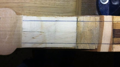 Φτιάχτηκε πιο στενός οδηγός (με πλάτος όσο το ταβλάκι που πατάει η ταστιέρα ) για τη χάραξη των τάστων και εκεί η συνέχεια δείχνει ότι θα πάει μάλλον στρωτά.
