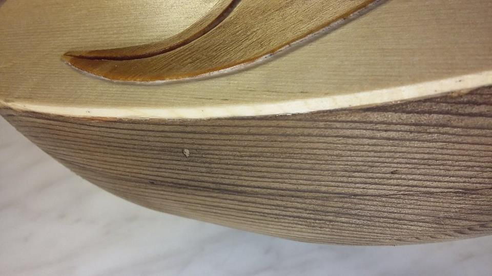 Η ταστιέρα έχει κολληθεί … (αυτό ίσως με δυσκολέψει λίγο, αλλά δεν αλλάζει σε καμμία περίπτωση το τεχνικό ενδιαφέρον )  Ο εξωτερικός τάκος πίσω είναι από μουριά για να βιδωθεί εκεί, στο σκληρό ξυλάκι, η χορδιέρα και όχι επάνω στο σαθρό πεύκο που μας έκανε εκεί πίσω το ύποπτο και στατικά επίφοβο  >:( «κρακ» …