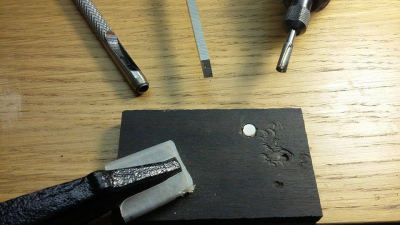Στον μικρό κρατήρα που έγινε, μπαίνει το dremel με το ρουτεράκι διαμέτρου 4,94 χιλ. για το υπόλοιπο σκάψιμο