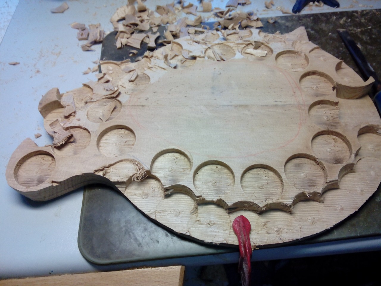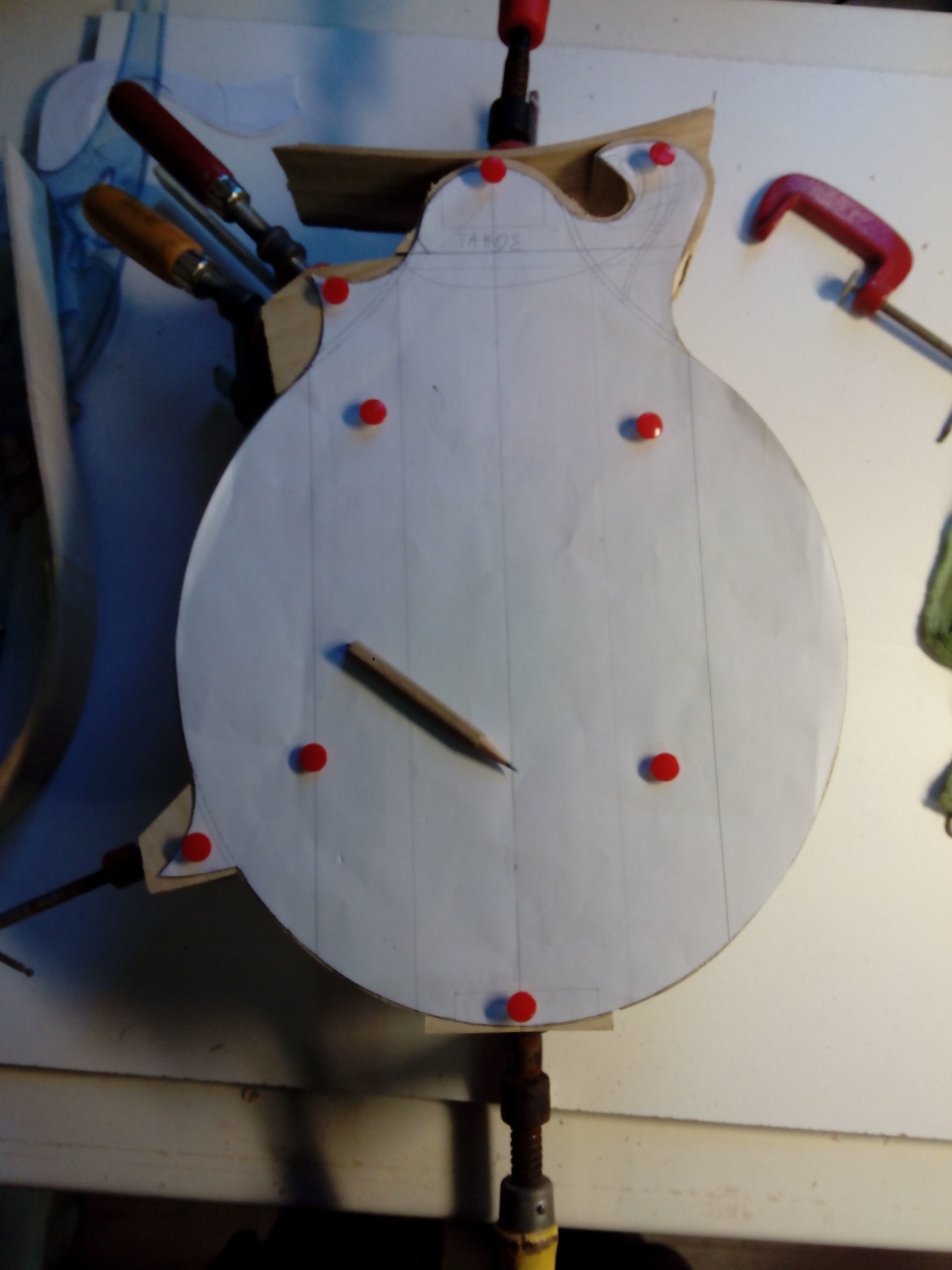 Το πάχος του καλούπιου είναι 1cm λιγότερο από το σώμα του οργάνου και ο λόγος είναι για να μου δώσει χώρο να βάλω το εσωτερικό φιλέτο πριν ξεκαλουποσω.