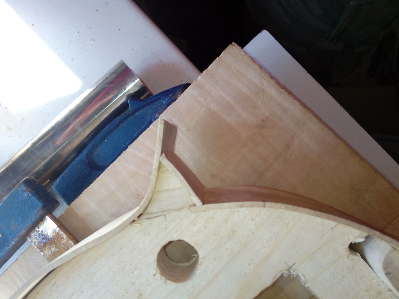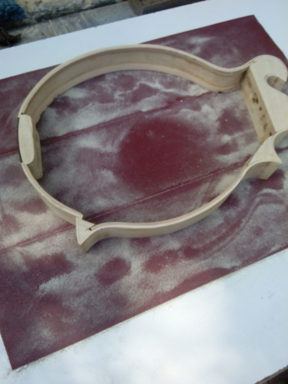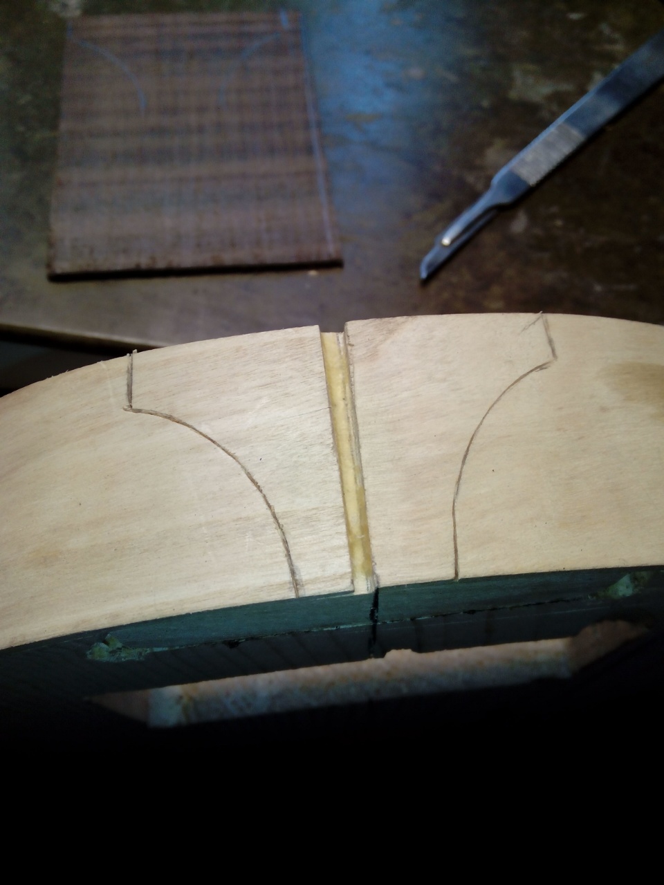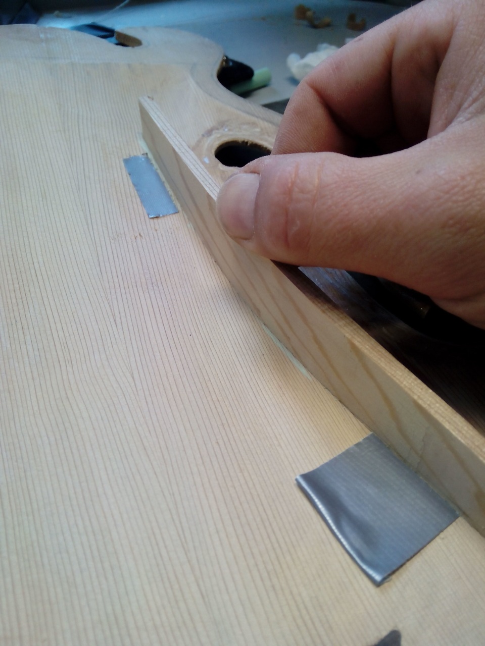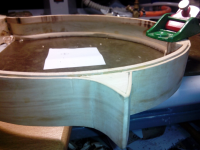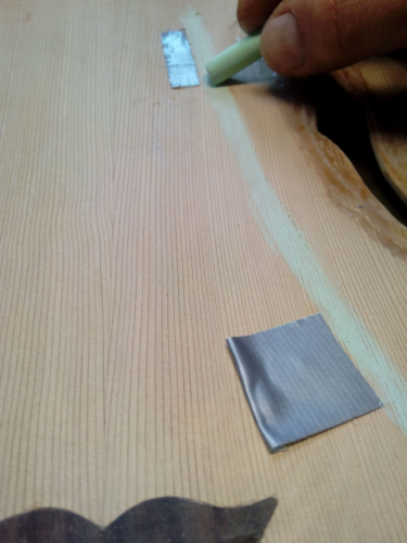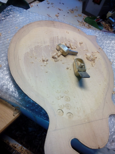 Το μπροστά καπάκι είναι κέδρος και εσωτερικά στα f holes πειραματίστηκα  λίγο και έβαλα ελαστικό εποξικο με ενίσχυση απο υαλονημα.
