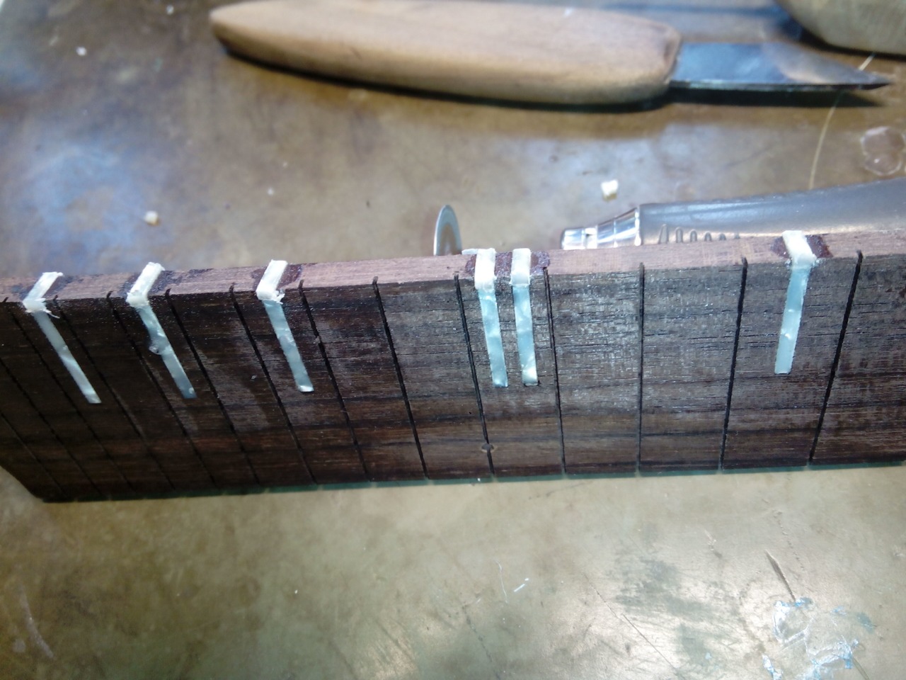 Έδωσα και λίγο χρόνο στο στο μανίκι από καρύδια σφένδαμο  και ταστιέρα από παλίσανδρο και 2 βέργες ανθρακόνημα 3mm.τελικά δεν μου αρέσει και το σαλιγκάρι αλλά...