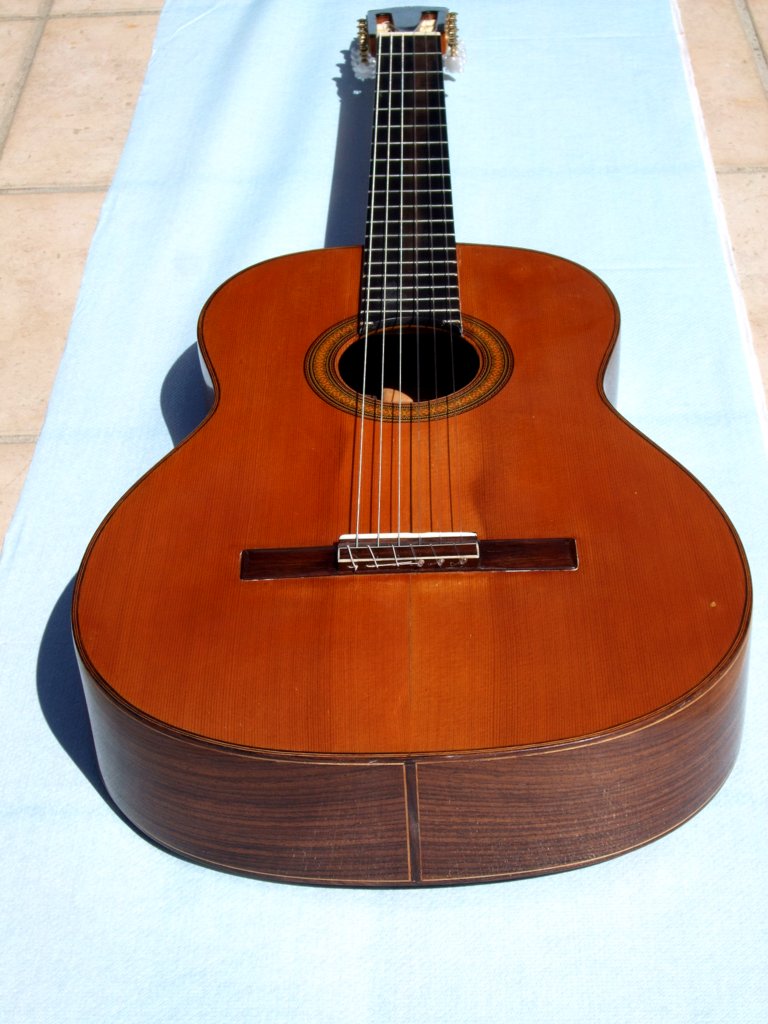 Η ‘middle-aged’ τώρα πρώτη μου κιθάρα ατασκευάστηκε πριν 35 χρόνια βάση οδηγιών του βιβλίου του Irving Sloane με εργαλεία ένα πριόνι ,ένα σουγιά , ράσπα γυαλόχαρτο και για ξύστρες αντικειμενικές πλάκες ( γιαλλάκια ) από το εργαστήριο της γυναίκας μου. Ήμουν όμως τυχερότερος από τον Στέλιο Είχα και το παλιό ροκάνι του πατέρα μου. Η κιθάρα ήταν ηχητικά πολύ καλή και φίλος κιθαρίστας την χρησιμοποιούσε στο κέντρο που δούλευε Το καπάκι έκανε ελάχιστο cave in επειδή το καπάκι ήταν Flat και όχι arched .To playability και το ύψος των χορδών δεν είχε επηρεαστεί. Δυστυχώς σε κάποιο στάδιο την αποσυναρμολόγησα ( ήμουν in my thirties τότε ) και δεν θυμάμαι τώρα τι μετατροπές της έκανα Όταν μετά από χρόνια διάβασα για τις κιθάρες Smallman την ξαναξύλωσα και άλλαξα το strutting system από Τορρες σε Balsa grit χωρίς επίχριση με carbon Δεν ασχολήθηκα μαζί της για πολλά χρόνια αλλά τώρα που την ακούω έχει αποκτήσει μια φοβερή διάρκεια και άρεσε ιδιαίτερα σε φίλη κιθαρίστρια Παρόλα αυτά η επόμενες 2-3 κιθάρες που θα φτιάξω θα είναι traditional ,δηλαδή Torres, Romanillios,ή Houser style.