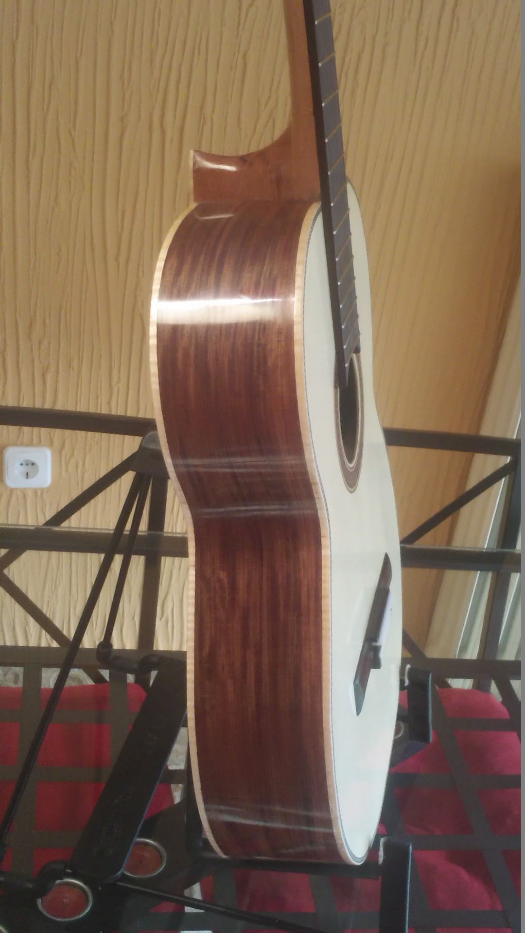 Στα κιθαρόνια που δείχνω παρακάτω έχω ακριβώς τον ίδιο οπλισμό, είναι στο ίδιο καλούπι φτιαγμένα,έχω τις ίδιες διαστάσεις ,την ίδια κλίμακα κλπ , οι μόνες διαφορές που υπάρχουν είναι καθαρά εμφανισιακές (δεν νομίζω οτι παίζει ρόλο αυτο στον τελικό ήχο) και η βασική διαφορά τους είναι το διαφορετικό ξύλο για το σκάφος (καρυδιά-μουριά,το αγαπημένο μου και σφενδάμι)
