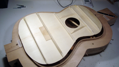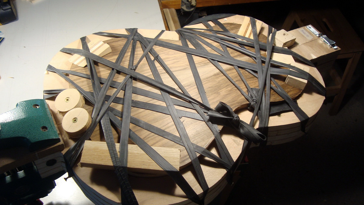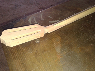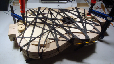 το καμάρωμα: σκάλα, όλα παράλληλα, ο καβαλάρης ("κολυμπητός", όχι κολλητός) θα "κάτσει" - διόρθωσης (compensation) συμπεριλαμβανομένης  - περίπου 15 μμ από το καμάρι, πάνω στην ενίσχυση. Τα καμάρια βασίζονται όπως είπα στο Γερμανικό κιθαρόνι (ε βέβαια κάνω και τις επεμβάσεις μου, θα δείξει).