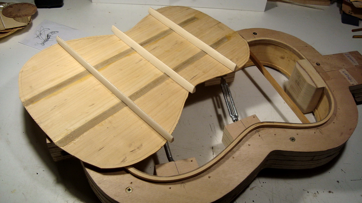 κι εκεί που δούλευα μου την έσπασε ένα καλούπι "σε τεύχη" που μπερδευόταν στα πόδια μου συνέχεια (είχα κόψει τα κομμάτια πέρισυ τέτοιον καιρό http://www.luthier.gr/index.php?topic=2463.0) κι αποφάσισα να το τελειώσω, να καθαρίσει ο χώρος τουλάχιστον