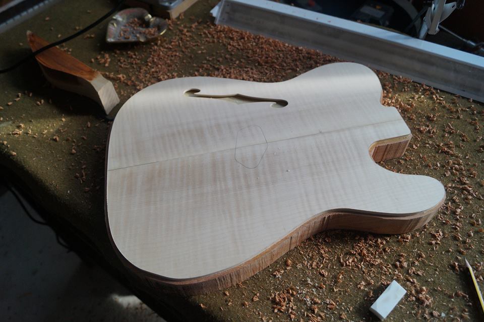 Καλησπέρα σε όλους! Αυτές τις μέρες τελείωσα μια από τις κατασκευές μου, η οποία είναι και η πρώτη που παρουσιάζω στο φόρουμ. Ασχολούμαι περίπου 3 χρόνια με την κατασκεύη εξ'ολοκλήρου απ'το μηδέν και ύστερα από αρκετούς πειραματισμούς αύτη είναι μία από τις κιθάρες που τελείωσα. Είναι μια ''κούφια'' telecaster,τύπου thiline. Το σώμα είναι φτιαγμένο από ένα κομμάτι σαπέλι με flame maple καπάκι και το μπράτσο είναι κελεμπέκι με παλίσανδρο ινδίας ταστιέρα. Ελπίζω να σας αρέσει!