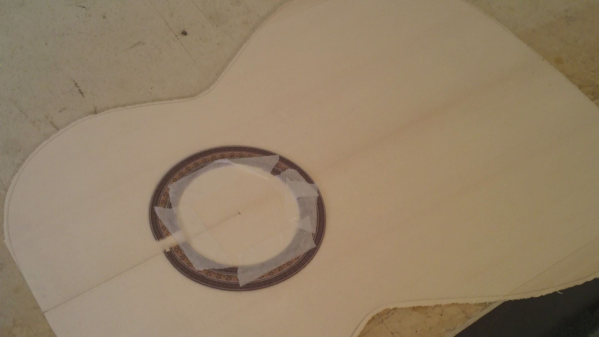 -χαραγμα με κοπιδι (φαλτσετα) και μετα σκαλισμα με το ρουτερ, στην θεση της ροζετας