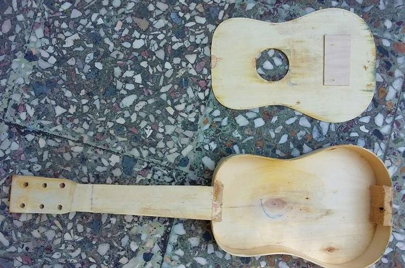 Ενα κινέζικο κιθαράκι από λεπτό κόντρα πλακέ , που ξεβάφτηκε με διαβρωτικό , "ξηλώθηκε" , και όταν