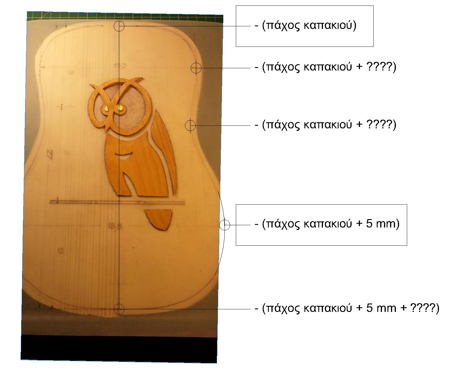 Τα καμάρια του καπακιού τι ύψη έχουν ?  τα κόλλησες ? αν όχι, λέπτυνέ τα.  Αν τα κόλλησες, αλάφρυνέ τα όσο μπορείς με φαλτσέτα ή κοπίδι ή ό,τι σε βολεύει τέλος πάντων. Για τζουρά 6 χλστ. πάχος και 12 ύψος είναι οκ. Το δικό σου καπάκι ναι μεν δεν έχει σχήμα τζουρά, αλλά έχει παρόμοιες διαστάσεις, Για να έχεις μέτρο σύγκρισης, στις κιθάρες (Απαρτιάν) μετράω καμάρια 6*18.