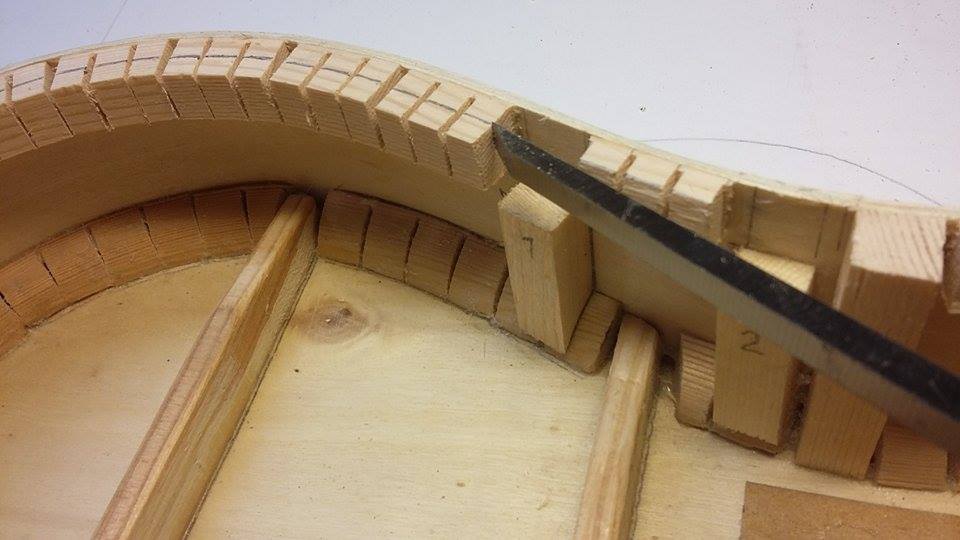 σκέφτομαι να "φάω" παράλληλα τα πλαϊνά του σκάφους από την ένωση με το μανίκι, μέχρι τη θέση της μολυβιάς , κατά 0,5 cm και από εκεί και μετά να το διαμορφώσω σιγά και προοδευτικά μέχρι τον τάκο, έτσι ώστε να έρθει το καπάκι και να καθίσει στο σκάφος, σαν καλή κυρία !
