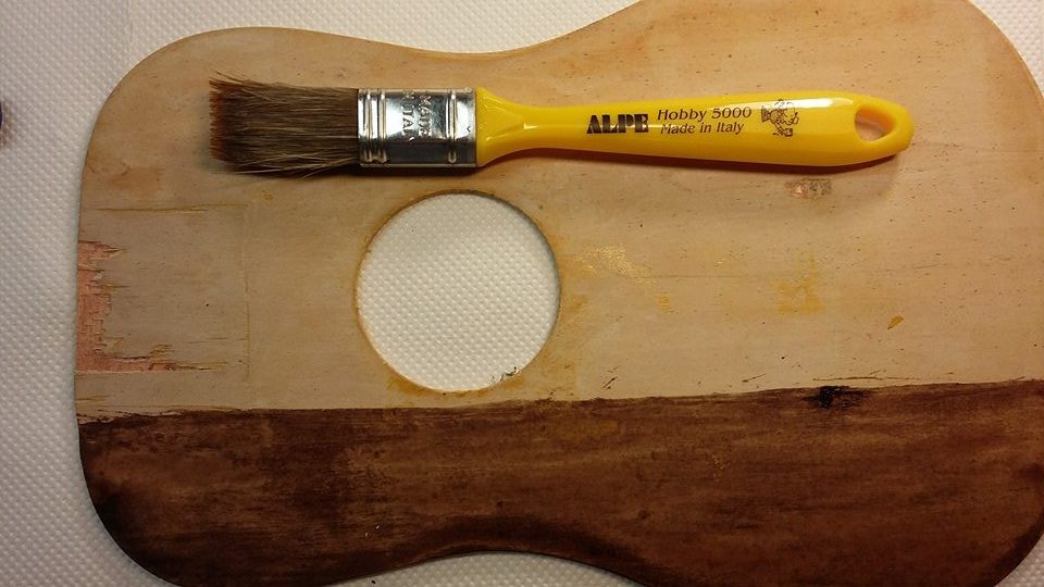 και εν τω μεταξύ είπα να δοκιμάσω πώς θα έδειχνε η κάσια επάνω στο αρχικό κινέζικο καπάκι από κοντρα πλακέ 2 mm , που είχε περαστεί με διαβρωτικό χρωμάτων ...