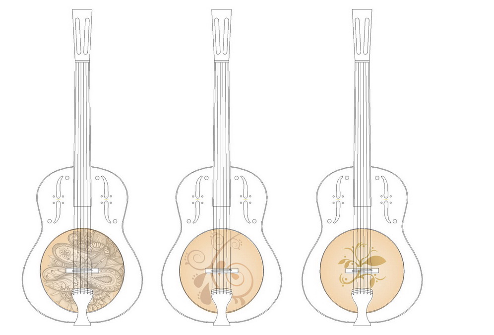 η οποία όπως βλέπετε αλλάζει καπάκια και μεταμορφώνεται (ακουστική, "μπάντζο", resonator, ηλεκτρική)