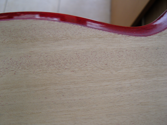 Η κιθάρα αποτελείται από 2 κομμάτια μαονιού, κολλημένα μεταξύ τους, γεγονός φυσιολογικό που συμβαίνει στις περισσότερες κιθάρες. Η ποιότητά τους όμως είναι διαφορετική, καθώς στο ένα, η βαφή έχει εισχωρήσει πολύ λιγότερο στους πόρους. Δηλαδή στο τρίψιμο, αρκετά νωρίτερα σταμάτησε να φαίνεται βαφή στους πόρους.