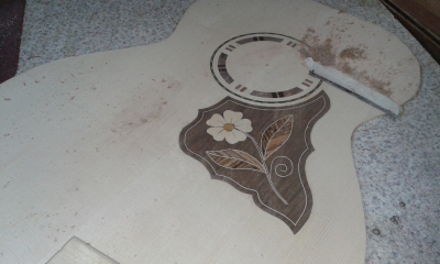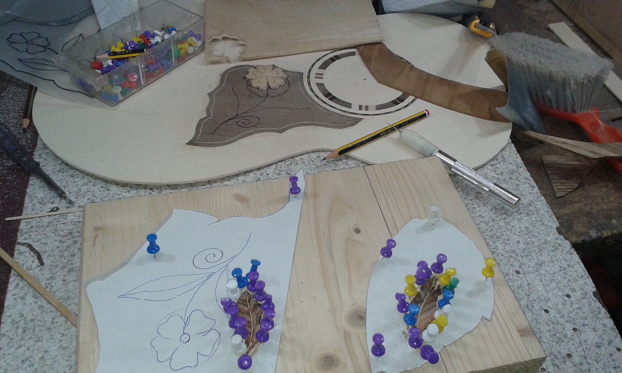 Καινούρια ρεμπετοκιθάρα  με σκάφος αμερικάνικη καρυδιά . Χειροποίητη ροζέτα και πεναριά με ένθετο σχέδιο σε φόντο καρυδιάς , καθώς και περιφερειακή διακόσμηση . Τα ξύλα που χρησιμοποιήθηκαν για τις φιγούρες κλπ είναι : βέγκε, ζεμπράνο, νιαγκόν, αμερ καρυδιά, σφεντάμι, μουριά , παντούκ .