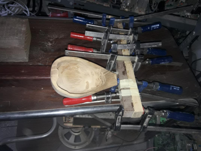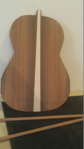 Έκοψα μια μουριά δεκαετίας που είχα και έβγαλα ντούγιες για την μπουζουκομάνα και κάμποσους τζουράδες. Έβγαλα από την ίδια μουριά ένα μάνικο για σκαφτό μπαγλαμά από την ίδια μουριά και ξεκίνησα και έναν ντουγάτο μπαγλαμά από κελεμπέκι. Το μάνικο που έφτιαξα είναι ναι μεν μονοκόμματη μουριά (χωρίς κόντρες) μόνο που του έκοψα στην μέση και το γύρισα ανάποδα τα νερά για ενίσχυση. Βάζω και μια φωτογραφία από την κορδέλλα που μέσα ατο πριονίδια που την γονάτισα