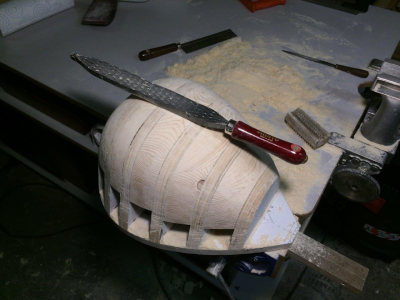 Γέμισα λοιπόν το καλούπι με μαλακό ξύλο μέχρι ένα σημείο και λιμάρισα με τη ράσπα προσεκτικά. Και μετά γυαλόχαρτα... Ένας σκασμός δουλειά!