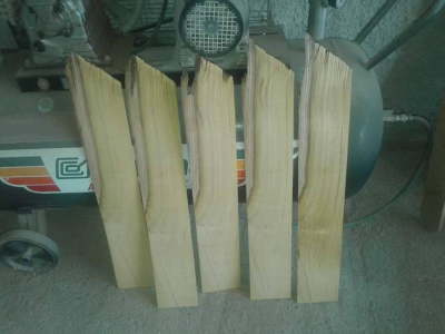 Εχουμε λοιπον δυο κιθαρες που σκαρωθηκαν γρηγορα με πλαινα απο οξυα πολυ παλια, εχουμε και μια μουρια που περιμενει να γινει κι αυτη πλαινα για κιθαρα, ενα μικρουλη  κιθαραμπαγλαμα και παλι απο οξυα, κι ενα σκαφακι μπουζουκιου απο μουρια και μαυρο φιλετακι που ομως δεν εχει αρχισει ακομη. Θα το ξεχνουσα.......................εφτιαξα κι ενα Drum sander  για να τριβω τα καπακια και τις δουγιες, που ομως λογω εργασιας θελoυν κατι ψιλα ακομη. Τα κουζινετα ειναι μια ευγενικη προσφωρα του κουμπαρου μου John 2004