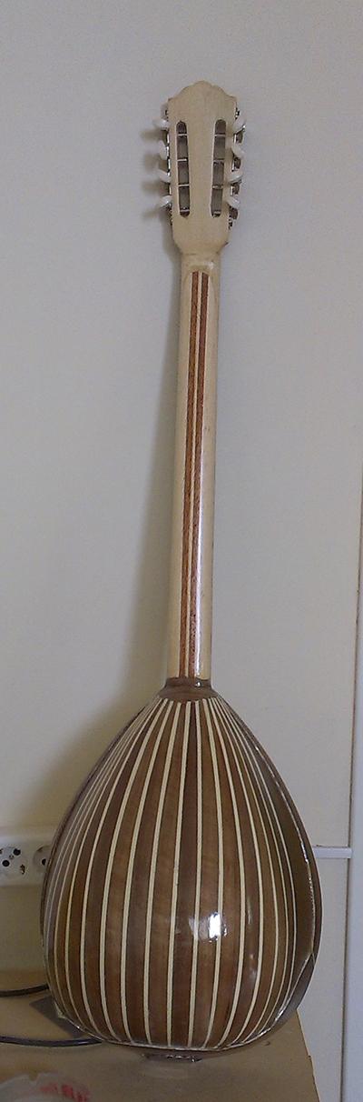 Τελειωμένο πάνω  στο καλούπι του Vagges2010. Πολύ λιτό (δυστυχώς γιατί ήταν η πρώτη δοκιμή του καλουπιού) - φλαμούρι καράολο με καρυδιά όπως και η ροζέτα, μανίκι με δύο κόντρες μαόνι και μια μεσαία κελεμπέκι. Ανεβάζω και ήχο σε λίγο