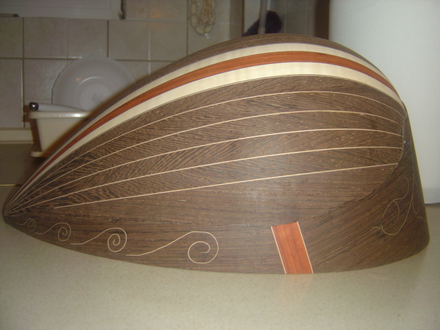 Σας ευχαριστω πολυ  ολους.Λοιπον το βεγγε οσο ομορφο ειναι, αλλο  τοσο κωλοξυλο ειναι στην κατεργασια.Απο που ν'αρχισω και που να τελειωσω.......απο το κοψιμο του μαδεριου  στην κορδελα που την παει οπου θελει το ξυλο λογω νερων?πλανισμα- ξεχονδρισμα?πηγα να το κατεβασω  στα  3mm και εσχισε το κομματι ,πεταμα,αλλο μετα,με το ροκανι ?κατατρυπηθηκαν τα χερια μου ,οι ακρες της ντουγας εσπαζαν,λυγισμα?εχει νερα σκληρα και δυνατα στρεβλωνει για πλακα και  αν δεν προσεξεις στο λυγισμα αντι για ντουγα φτιαχνεις μια υπεροχη ελικα,κολατζα?..........no comment ,το κεντημα της? στην περιοχη της λυρας ο,τι λεπτο κομματι υπαρχει μου ειχε σπασει ,στο τελος εκτος απο την ενθεση της φιγουρας ειχα να φτιαξω  και ενα ωραιο παζλ απο καφε κομματακια.Δεν θυμαμαι ποσες φορες ειπα "τα παραταω".Η αληθεια ειναι οτι το καθε  ξυλο  εχει τα χαρακτηριστικα του και μαθαινεις να το χειριζεσαι,οσο δυσκολο κι αν ειναι,το συνηθηζεις.