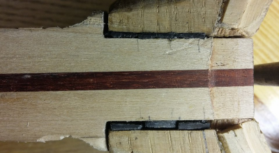 Κολλήθηκε το μανίκι .  Στα κενά που είχε το θηλυκό μόρσο , δεξιά και αριστερά , μπήκαν σφηνάκια από έβενο .