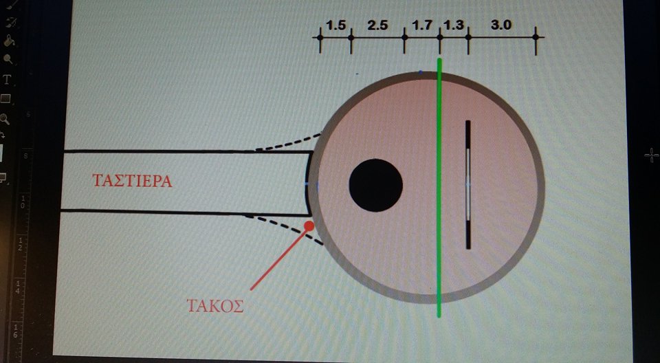 Η γωνία νομίζω σου βγαίνει λίγο μεγάλη με 3 εκ. από τον χορδοκράτη και δεν ξέρω αν σε βολέψει στο παίξιμο (εγώ θέλω μεγαλύτερη απόσταση για να βολευτώ).