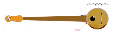Μπορείς να βάλεις κοκκαλάκι κάτω από τις χορδές όπως έδειξε ο sakkalis σε άλλο θέμα ή / και να προσθέσεις ακόμα έναν τάκο εξωτερικά πίσω για να απομακρυνθεί ο χορδοκράτης και ταυτόχρονα να αλλάξει η γωνία.