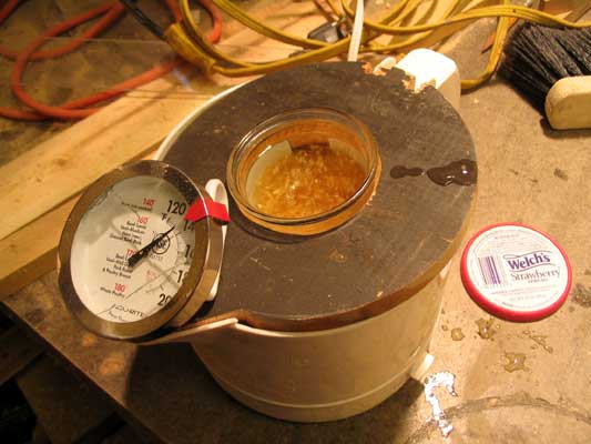 προσπαθώ να φτιάξω ένα σύστημα που να κρατά θερμή την ψαρόκολλα (μέχρι 65 κελσίου το πολύ). Προς το παρόν δουλεύω με μπαιν μαρί και συντηρώ τη θερμοκρασία με ένα ρεσώ σε φοντί κατασκευή (δηλαδή κεράκι κάτω από ένα κεραμικό).