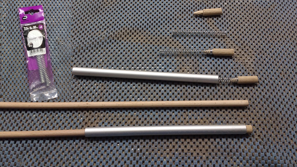 4) Μικρά κομάτια μήκους 3 cm από καβίλια ραβδωτή διαμέτρου 10mm, που στη μια άκρη τους θα συγκρατούν το ελλατήριο, και με αυτά θα ταπώσω το ένα άκρο του σωλήνα αλουμινίου.
