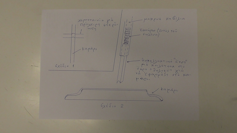 Αὐτές οἱ διαμορφωμένες κοῖλες ἄκρες , θά μποροῦσαν νά εἶναι  " ἀνταλλακτικές "  , δηλαδή νά ἔχη κάποιος μικρά καί λεπτά ξύλα γιά  " ἄκρες "  τῆς κάθε μπάρας , μέ διαφορετικά πλάτη κοιλοτήτων ( γιά κάθε περίπτωση πάχους καμαριοῦ ) , καί νά τίς προσαρμόζη κάθε φορά πού χρειάζεται " ἄκρες " τοῦ συγκεκριμένου πλάτους , εἴτε μέ τό σύστημα τοῦ ἐλατηρίου ( ὅπως στήν ἐπάνω , ἔτσι καί στήν κάτω μεριά τῆς μπάρας ) , εἴτε βιδωτές .