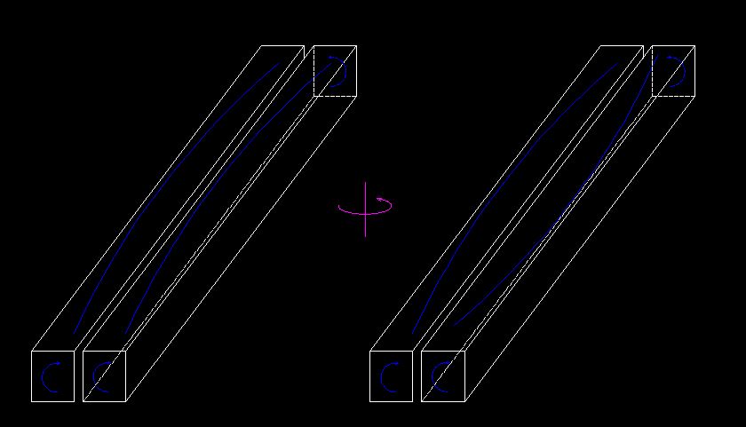 Στο σχήμα υποθέτω ότι το ξύλο που κόψαμε έχει τάσεις είτε συστροφής είτε κάμψης (φαίνονται με τις χρωματιστές γραμμές).