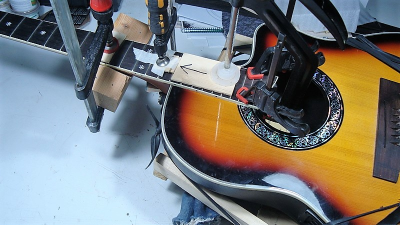 Νομίζω στάθηκα πολύ τυχερός με την κόλληση μπράτσου και ταστιέρας, σχεδόν δεν ήθελε σετάρισμα, μόνο το νέο τάστο έτριψα (επίσης τυχερός, είχα τάστο με δόντια από άλλη επισκευή, είναι πιο ψηλά από αυτά που χρησιμοποιώ συνήθως)...