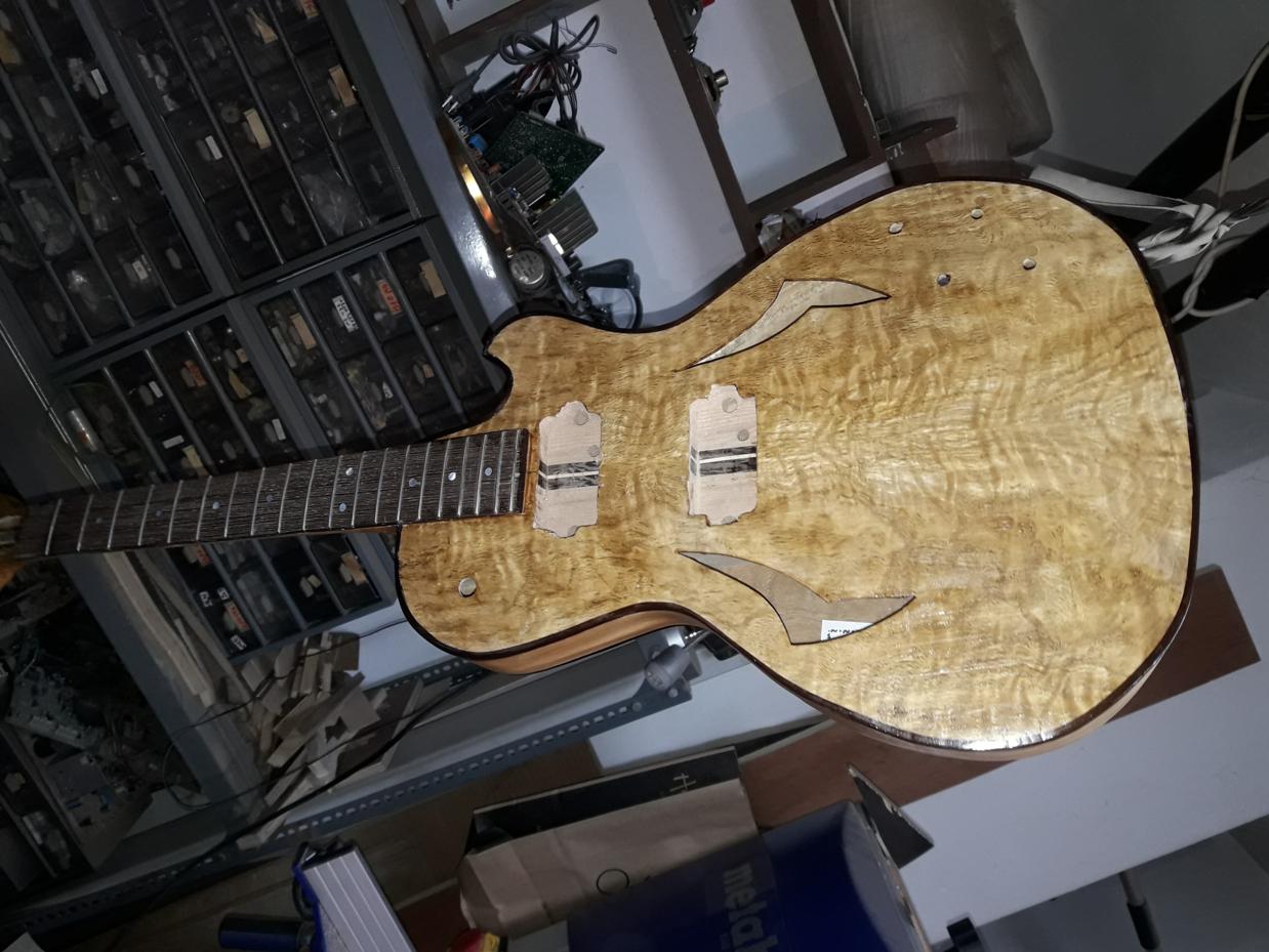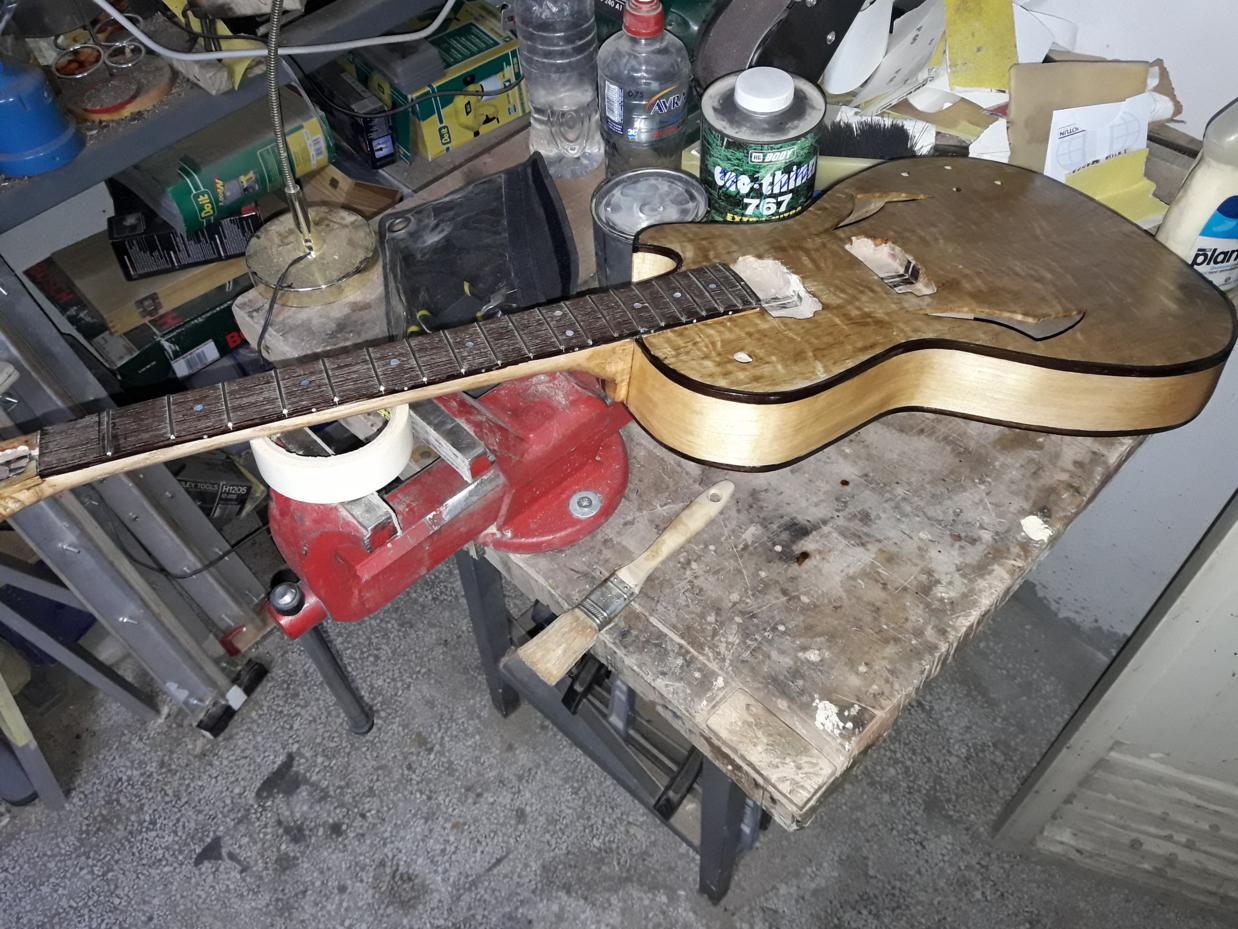 Χτες βράδυ, γίνανε τα πρωτα χοντρά τριψίματα με την ξύστρα να φύγουν οι κόλλες και στοκάρισα. Πέρασα ένα χέρι γομαλάκα προσωρινά να δω λίγο πως θα βγούν τα χρώματα. Τώρα έμεινε η πιο βαρετή δουλειά τριψίματα, τριψίματα, τριψίματα για να πάμε για λούστρα. Σκέφτομαι να περάσω ένα χέρι γομαλάκα, ένα χέρι σήλερ νίτρου και μετά βερνίκια. Δεν έχω αποφασίσει ακόμα. Ή θα πάω με λούστρο μπάλας (το γνωστό) ή κάποιο ματ βερνίκι (το ψάχνω). Το σχήμα το 1ο το δουλεύω στα μπουζούκια και λογικά είναι έξω από τα συνηθισμένα για ηλεκτρικές. Θα δούμε.